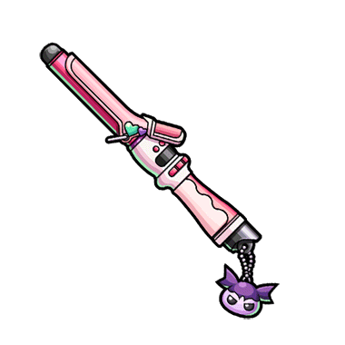 - リリスがカスタマイズしたヘアアイロン。手作りのワルヤミミンのマスコットがついている。