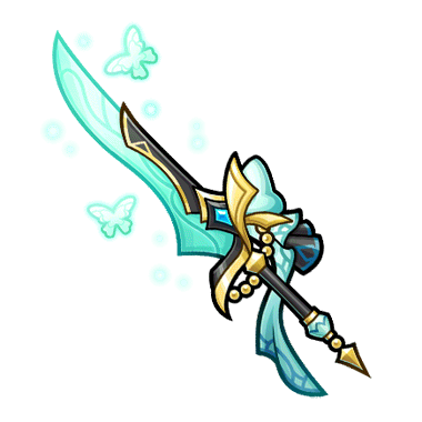 - 蝶をイメージしたリボンがあしらわれた剣。放った一撃の軌跡には、蝶が舞い、その一撃が戦いに思わぬ結果をもたらす。
