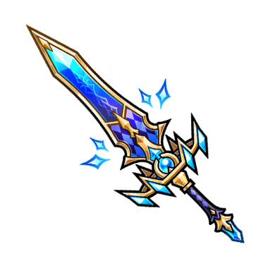 - 海の深さを思い起こす青と空の鮮やかさを思わせる青が共存する美しい剣。 その輝きは使い手を導く輝きか、己を律する道標か。 それは使い手に委ねられることだろう。