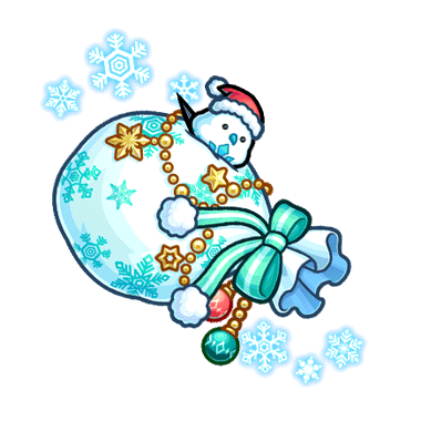 - 沫雪の力で結晶が袋を守るように周囲を舞う。 プレゼントを壊すわけにいくまいという彼の優しい一面が力を発現させた。
