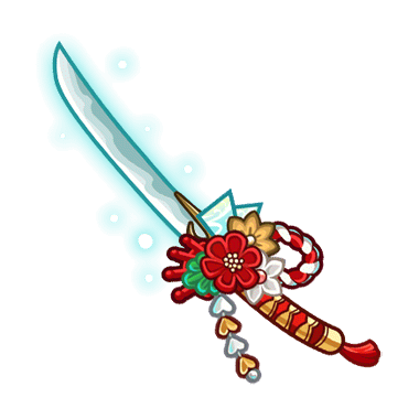 - 縁起のいい紅白の華をあしらった刀。破魔の力を宿し淡い光を放っている。