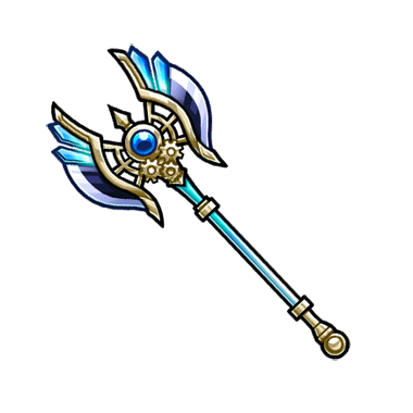 - 時を刻む歯車と深い青の宝玉があしらわれた斧。 手にすると清流のように心が澄み渡り、全ての感覚が研ぎ澄まされる。