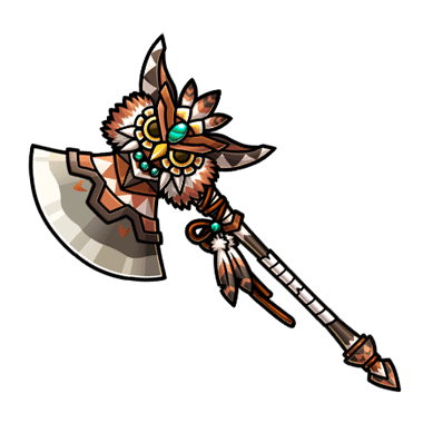 - 夜の闇に紛れ悪事を働くものを成敗する勇敢な梟を称え、模した斧。大きく羽を広げて飛び回る梟のように大きな刃が特徴的