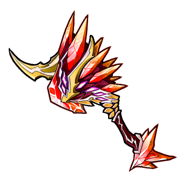 - 赤黒く燃え上がる大地に棲む竜より作り出した戦斧はマグマの力によって更に進化し、戦場そのものが燃え尽きるような絶対的な恐怖を敵に与えることができる。