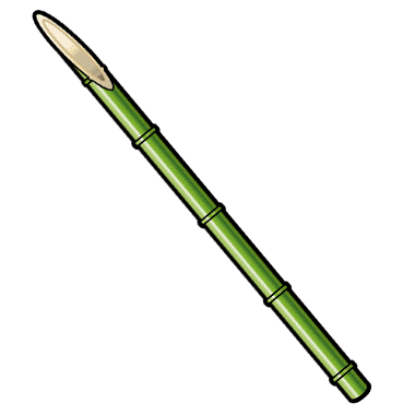 - たまたま近くに生えていた竹を加工して制作してみた槍。軽い、丈夫、手軽といろいろ使い勝手の良い武器に仕上がってしまった。自分のセンスが怖い。
