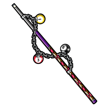 - ビリヤードを愛してやまない、一人のランサーを称えて作った槍。ビリヤードにおいても、モンスターとの戦いにおいても負け知らずだった彼だが、ついに引退することになった。それをねぎらい、彼の友人が記念に贈ったのがこの槍である。