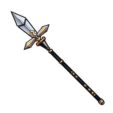 十字型の形状の槍。横に広がった部分で、攻撃を受け止めたりと多彩な動きが可能となった。