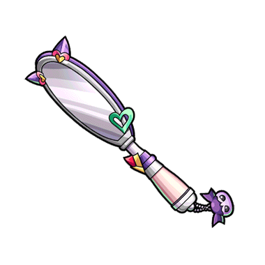- リリスがカスタマイズした手鏡。手作りのワルヤミミンのマスコットがついている。