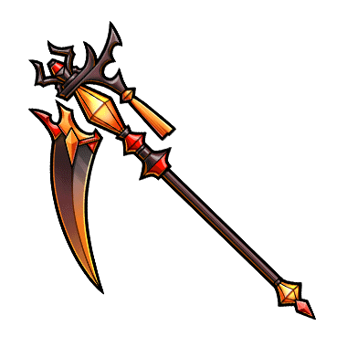 - 神竜の中でも特別魔力の大きな竜の王族の爪から造られた鎌。恐ろしいまでに洗練された爪は、切り裂くだけではとどまらず、傷口が永遠に熱を持ち続ける。