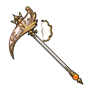 - 麗しく白金の輝きを放つその鎌は、王族の証とされている。 人々の心をつかみ、従えた王族の逸話が共に言い伝えられている。