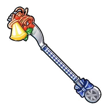 - リボンがついてキュートになったフォーク。 レモンの香りのさっぱりとしたパスタかと思いきや、甘いデザートパスタらしい。