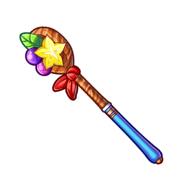 - ブルーベリーとスターフルーツの乗ったスプーン。の形をした槍。一匙で二つの味が楽しめてお得である。