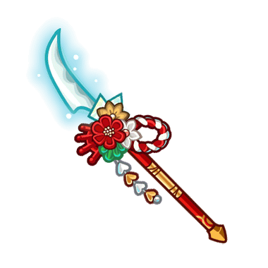 - 縁起のいい紅白の華をあしらった薙刀。破魔の力を宿し淡い光を放っている。