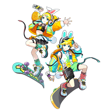 - ユニゾンの世界にやってきてお着替えしたリンとレン。アップテンポな音楽と共に、即興スプレーアートを繰り広げる。
