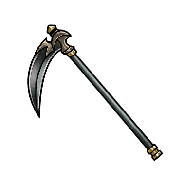 長い柄を持つありふれた鎌。農耕用の鎌の柄を長くしただけの簡単なつくりになっている。