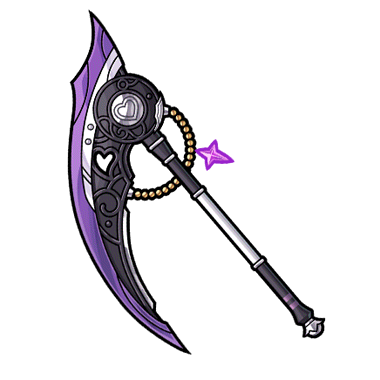 - 心を落ち着ける力があるという結晶があしらわれた鎌。 手にすると戦況を冷静に分析できるようになるという。