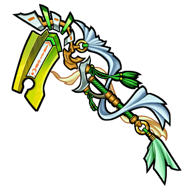 - 別の世界。風神シナトベの機巧の力が加わった大鎌。閃撃は疾風。全てを薙ぎ払う。