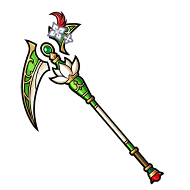 - 陽光を浴びたことで成長し、水晶の花が開花した花の探究者の鎌。 振った軌跡には花びらが舞い、美しい一撃が放たれると言われている。