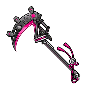- 紅き桜の紋章が刻まれた黒銀の鎌。青桜紋の白き鎌と対になっている。