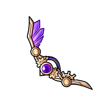 - 時を刻む歯車と深い紫の宝玉があしらわれた弓。 手にすると所有者すら飲み込まんとする強大な闘争心が湧き上がってくる。