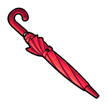 赤色の雨傘。滅多なことでは折れない。でも人を叩いてはだめですよ。