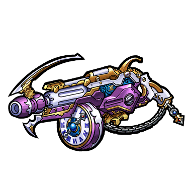 - 精霊クロノスの力が籠められた回転銃。放たれた弾は時間差で相手へ飛んでゆく。過去、未来の時間軸から対象を狙うことができる。