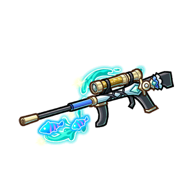 - 可愛らしい外見とは裏腹に、非常に高い威力を誇る長銃。周囲には美しい水流が舞い、青い魚たちがダンスするかのようにその場を彩る。