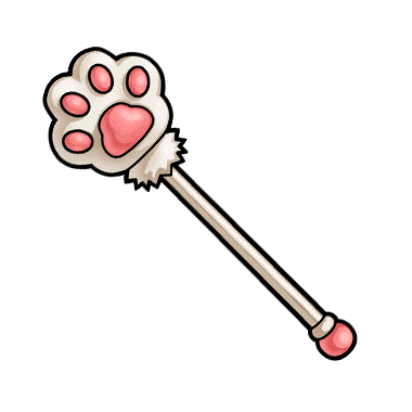 世界で一番カワイイ生き物の手の形の杖ニャ。こんな杖で攻撃されたらどんな相手でも一瞬でメロメロニャ。