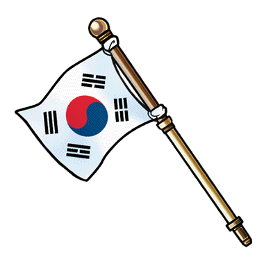 韓国の国旗。「太極旗」と呼ばれ、白は平和、青と赤には陰陽、などたくさんの思いが込められている。