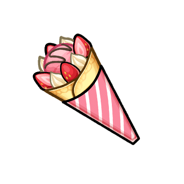 - ストロベリーアイスとイチゴがトッピングされたクレープ。甘酸っぱくてとっても美味しい!