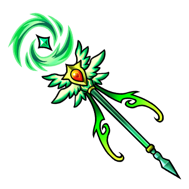 - 風の精霊「ガルーダ」の力を分け与えられた杖。先端で渦巻く暴風を操作し、敵を切り刻むことができる。