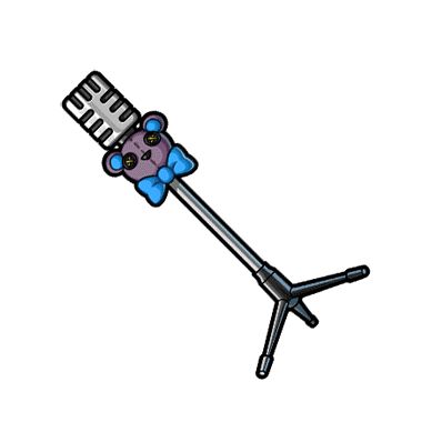 - マディア専用のマイク。 いつも一緒のぬいぐるみがついている。