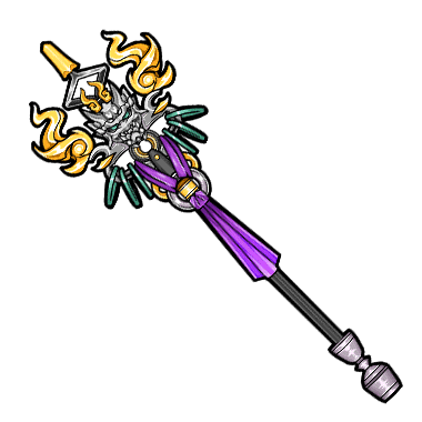 - 鬼の面を装飾にあしらった杖。装飾には貴金属を使い、杖自体を東国で最も位の高い神官による「キヨメ」が施されている。この「キヨメ」により魔を祓う力が備わった。