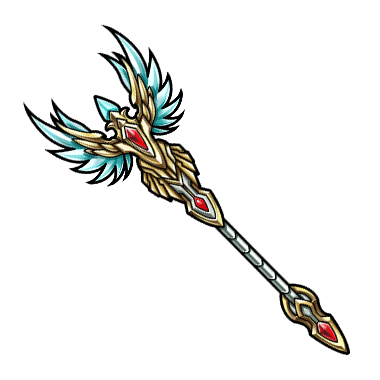 - 聖なる羽根をあしらった杖。長きに渡り戦場を移ろい、手にした者は天上の導きを耳にするといわれている。