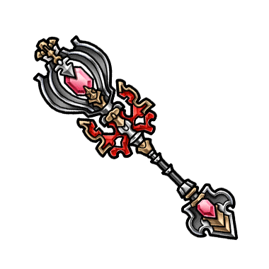 - 大軍の追撃をかわし、亡国の民を火山向うの新地へ率いた騎士の魔杖。押し流す火花を自由に躍らせるその姿は後世に「焰岩の巨竜」と名を残した。