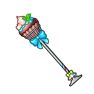 - チョコミントソースがかかったケーキが乗った杖。 戦いの最中にも食べることができる。
