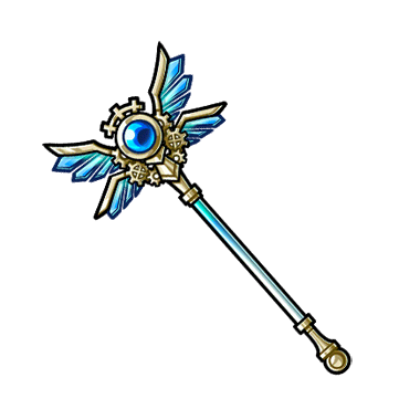 - 時を刻む歯車と深い青の宝玉があしらわれた杖。 手にすると清流のように心が澄み渡り、全ての感覚が研ぎ澄まされる。