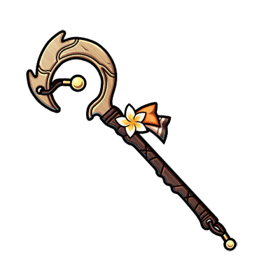 - 常夏の国で一番の職人が仕立てた木製の杖。 トレードマークの花飾りがついた杖は、手にした者に"希望と力"を与える。
