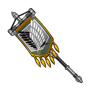 - 圧倒的な巨人に特化した特別な団旗。自由の翼を振りかざせば硬化能力を発揮した巨人に魔力による一撃を与える。