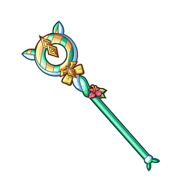 - リミミンの形を取り入れた浮き輪を思わせる意匠の杖。 実際に浮き輪としても使えるようになっているとか。