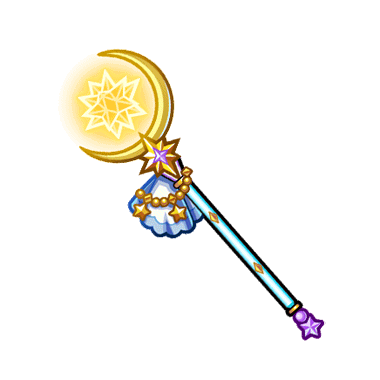 - 明けの空に瞬くきら星をあしらった杖。夕闇に光る宵の星の杖と対になっている。