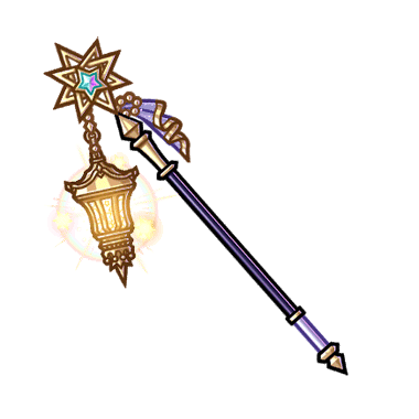 - 宵の空に瞬くきら星をあしらった杖。明けの空に光る星の杖と対になっている。