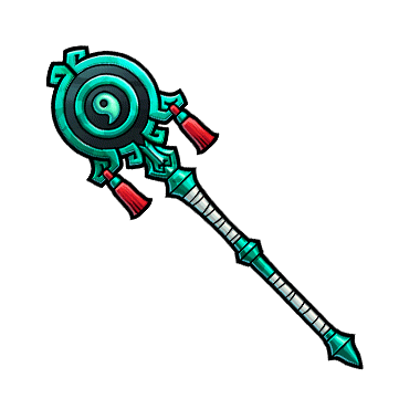 - 古代より伝わる杖。工芸品の技術を応用し青銅で作られた。