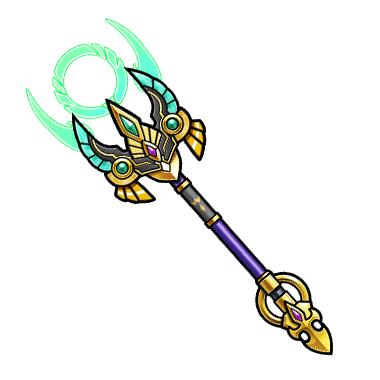 - 広範囲にわたって風の壁を作り、敵対するものを一網打尽にすることのできる杖。範囲を広げればその分威力は落ちるが、扱うもの次第では一騎当千に力を発揮したという。