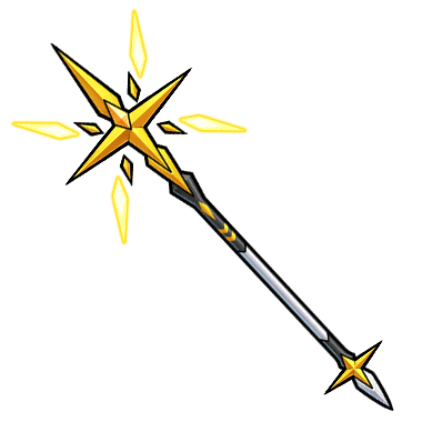 - 所有者の心に反応して力を増す光の杖。発する星の光は実態化し、あらゆる物体を無に返す魔力へと変わる。