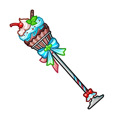 - チョコミントソースがかかったケーキが乗った杖。 戦いの最中にクリームを飛ばさないように注意!