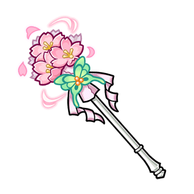- 花嫁姿のサクヤをイメージして作られた杖。祝福の気持ちが強いほど強力な力が宿るとされている。
