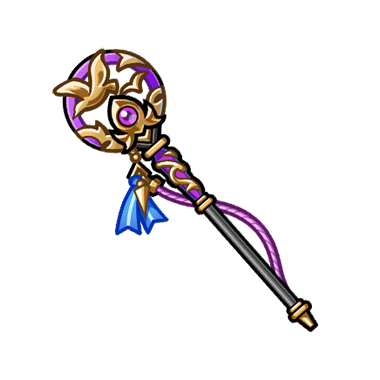 - 大人の色気を纏う美しい装飾と強力な魔力を誇る杖。夜の光に輝くその先端は、見る者を圧倒し、その存在感は戦場で一際目立つ。