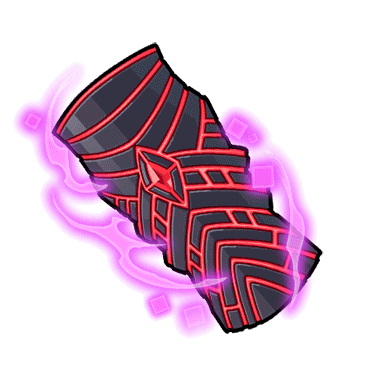 - 黒を基調にした赤いラインと中央の装飾が特徴の大盾。 スキル「悪食」によって、大盾に触れたものをMPに変換することができる。容量オーバーした際は、大盾に赤い装飾として魔力結晶が浮かび上がる。
