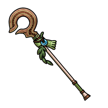- とある旅人が見つけた伝説の宝樹から造られた杖。武器に加工されたとしても草が生える生命力を持つ。宝樹と大地の生命力を吸い上げ、エーテルに変換することで長く戦えると言われている。